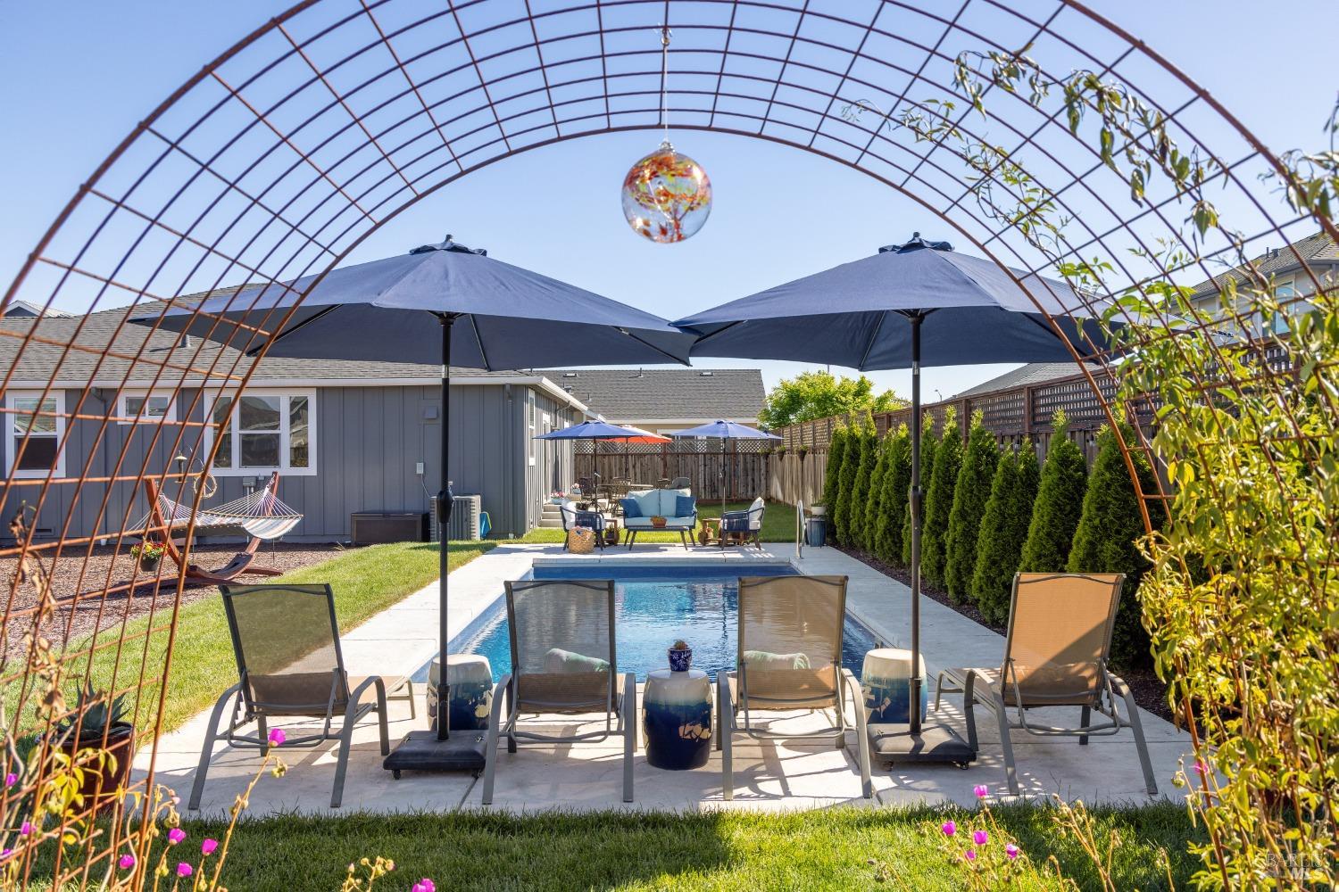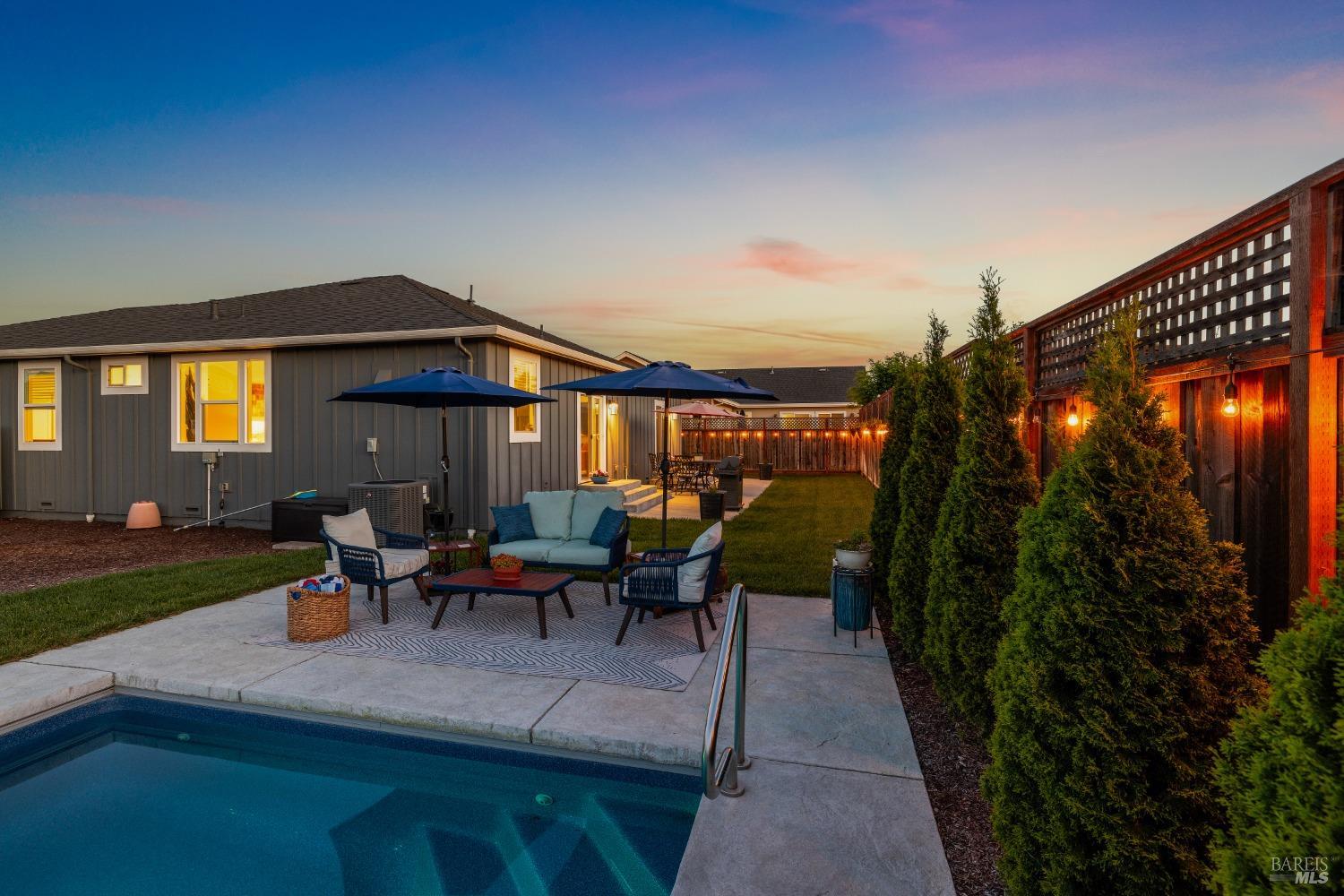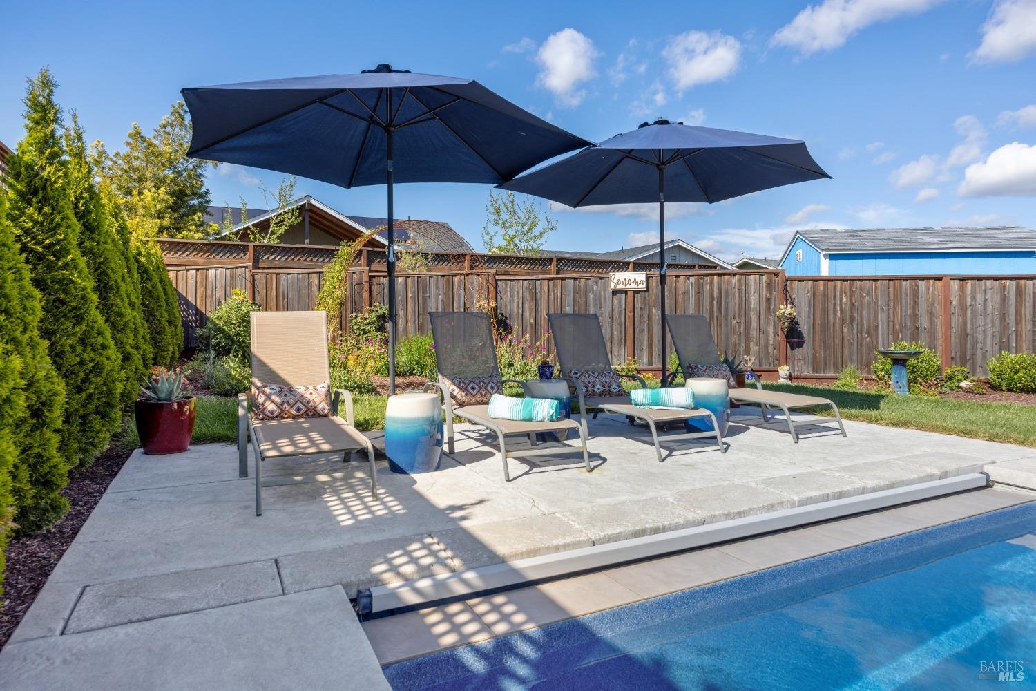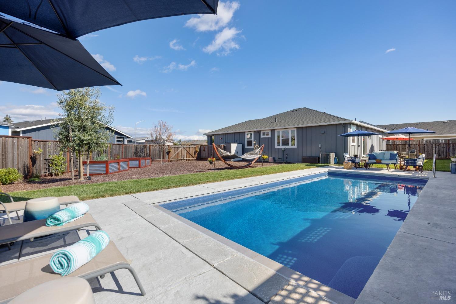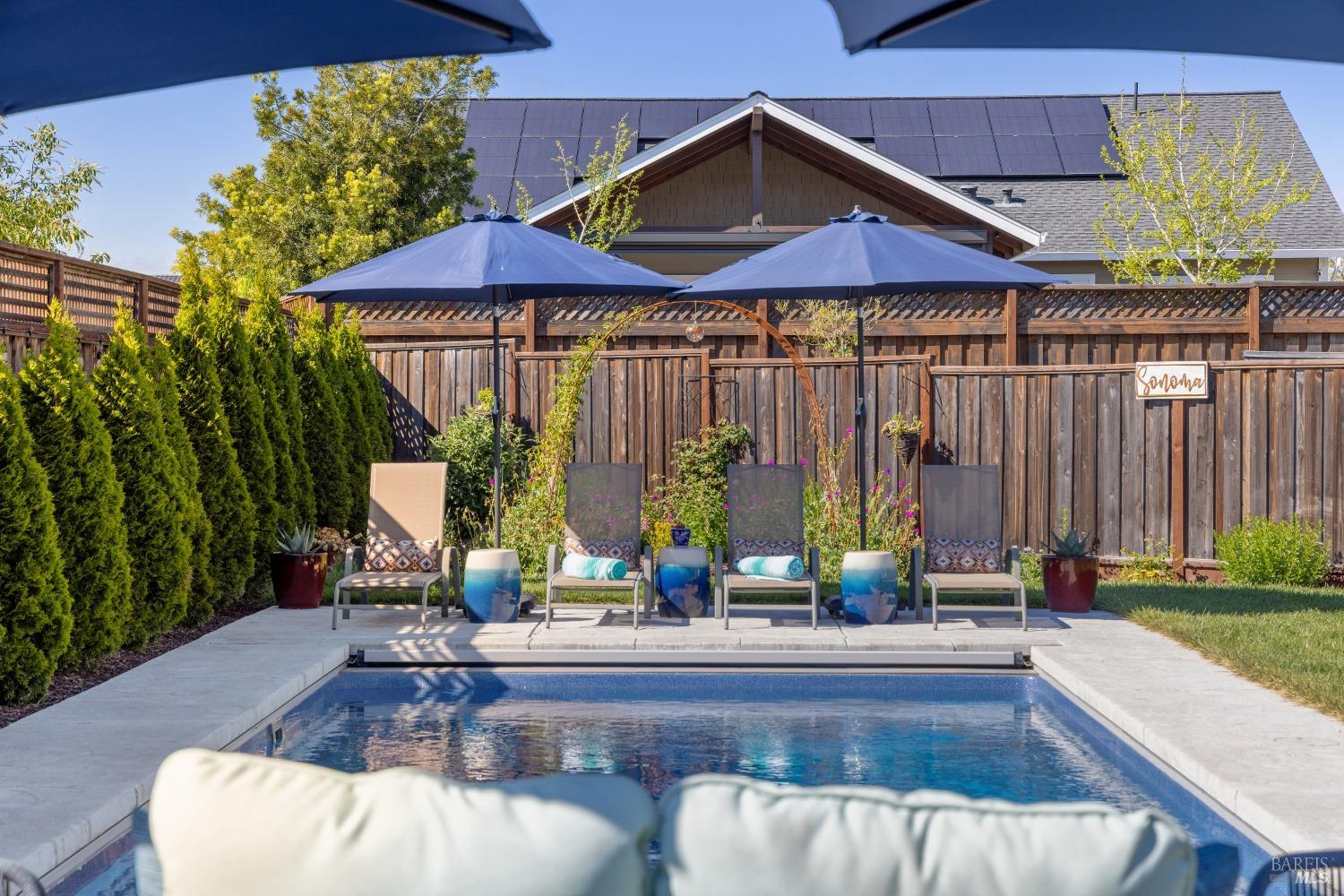 Perfectly Posh in Coffey Park. Beautiful, single level 3 bedroom, 2 bathroom, 1624 sf sanctuary on a tranquil, oversized cul-de-sac lot in sought-after Coffey Park. Gracious grand entry leads to a bright, modern, open floor plan boasting 9ft ceilings and tasteful finishes creating an inviting atmosphere ideal for entertaining. Spacious kitchen with generous island, quartz countertops, elegant dining area, custom cabinets, gas range, & built-in microwave. Milgard windows, wood floors, designer tile work in bathrooms, Kohler plumbing fixtures, tankless water heater. Luxurious primary en suite with expansive spa-like bathroom, walk-in closet, and outside access to patio. Amazing resort-like backyard oasis is irresistible on a sunny afternoon. Sparkling pool, patios and fully landscaped yard offers plenty of room for gardening and gatherings. You'll never want to go back inside! Newer construction home in pristine condition. Close to neighborhood parks, easy access to 101 and Trader Joe's. This is a rare find!