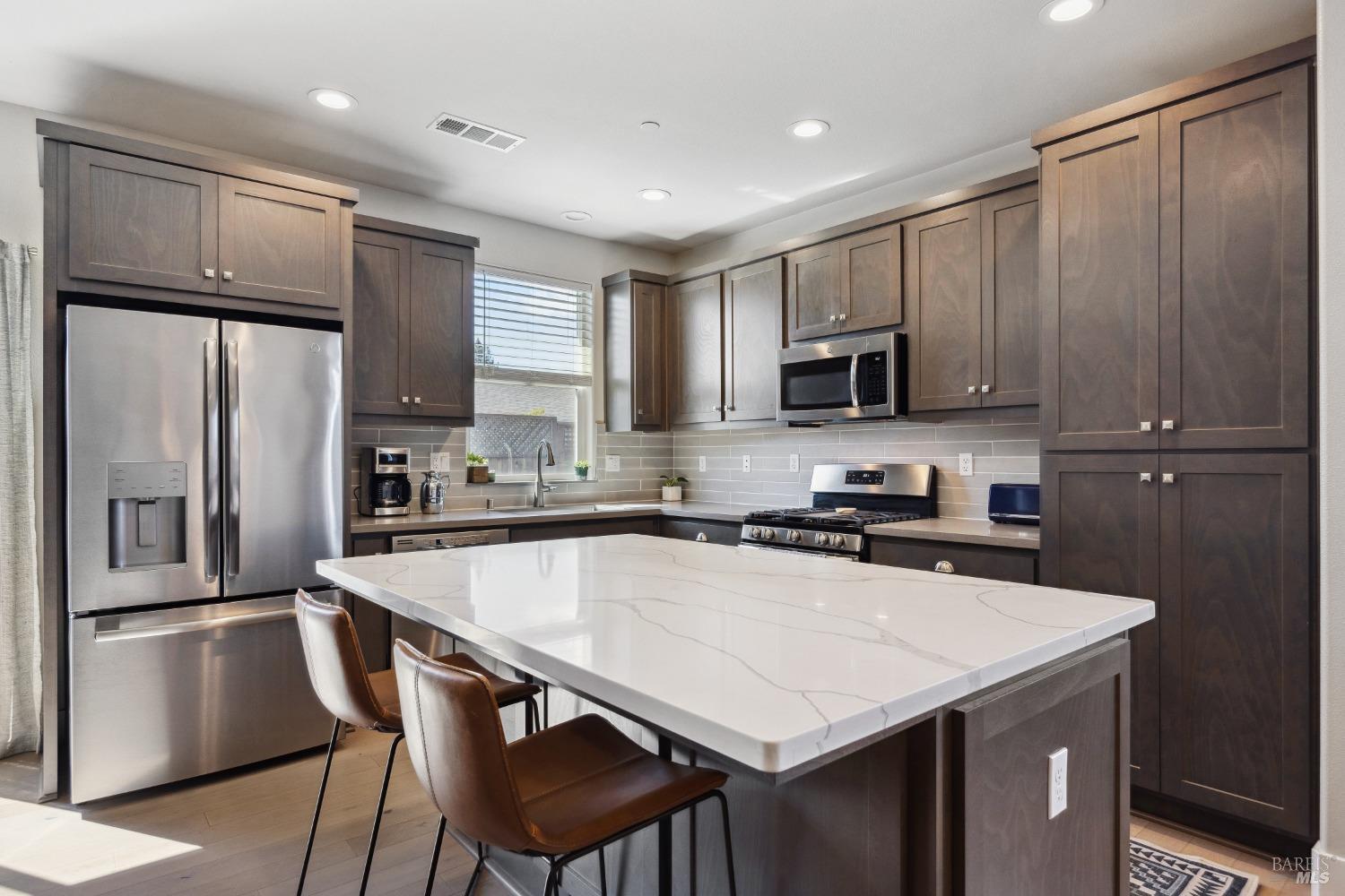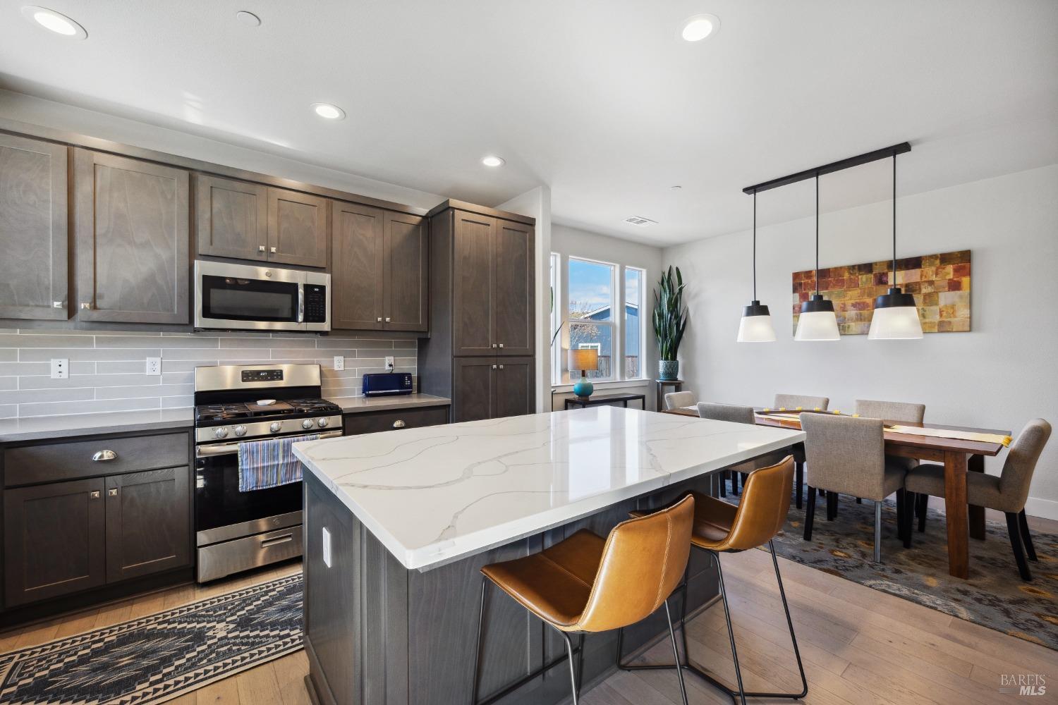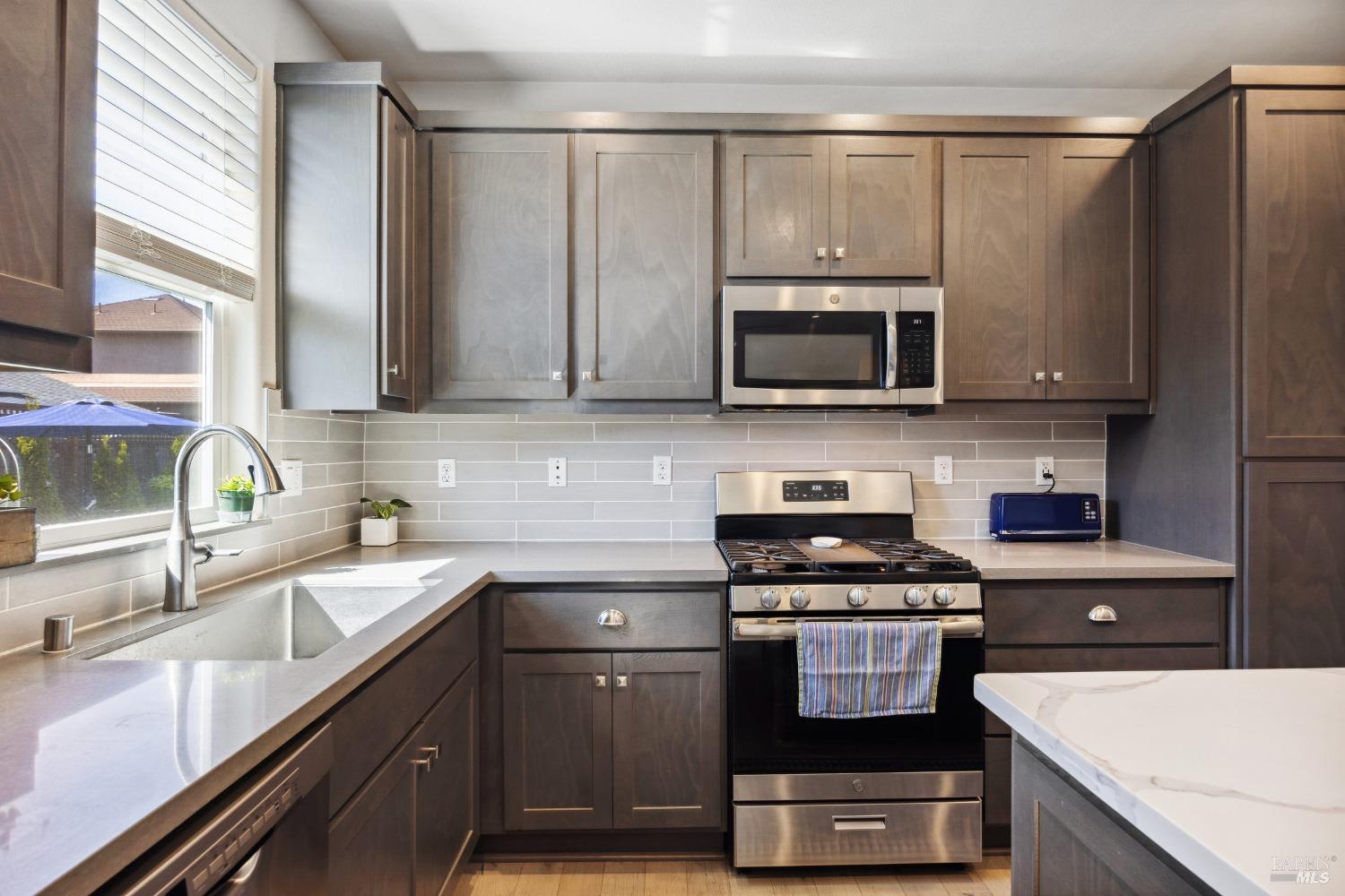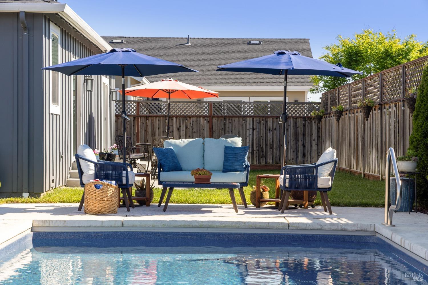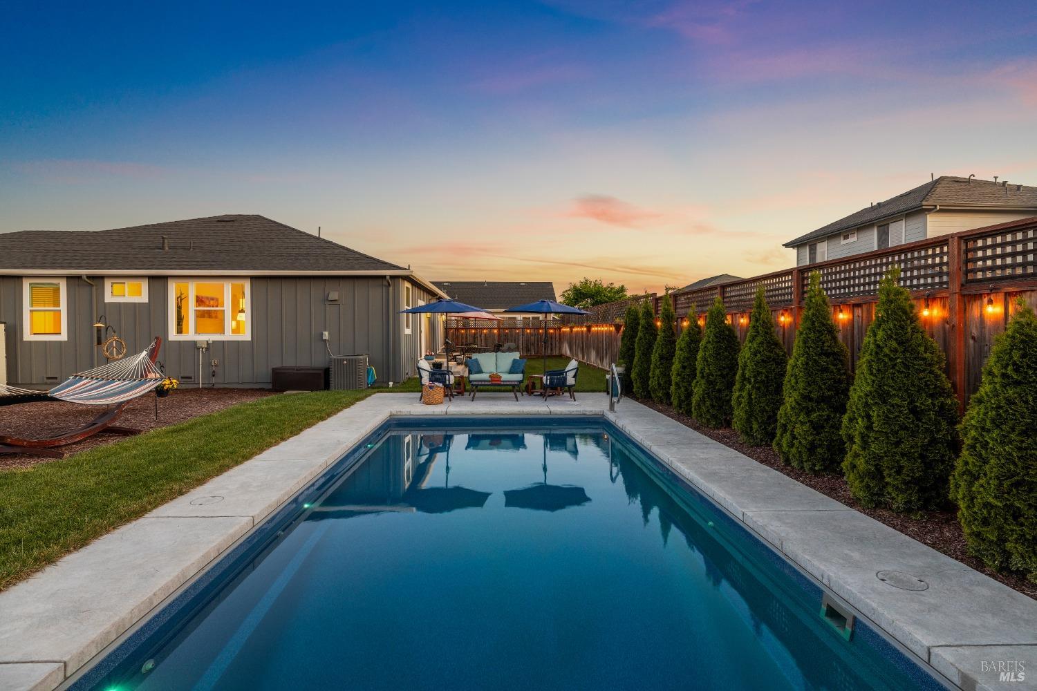 Perfectly Posh in Coffey Park. Beautiful, single level 3 bedroom, 2 bathroom, 1624 sf sanctuary on a tranquil, oversized cul-de-sac lot in sought-after Coffey Park. Gracious grand entry leads to a bright, modern, open floor plan boasting 9ft ceilings and tasteful finishes creating an inviting atmosphere ideal for entertaining. Spacious kitchen with generous island, quartz countertops, elegant dining area, custom cabinets, gas range, & built-in microwave. Milgard windows, wood floors, designer tile work in bathrooms, Kohler plumbing fixtures, tankless water heater. Luxurious primary en suite with expansive spa-like bathroom, walk-in closet, and outside access to patio. Amazing resort-like backyard oasis is irresistible on a sunny afternoon. Sparkling pool, patios and fully landscaped yard offers plenty of room for gardening and gatherings. You'll never want to go back inside! Newer construction home in pristine condition. Close to neighborhood parks, easy access to 101 and Trader Joe's. This is a rare find!