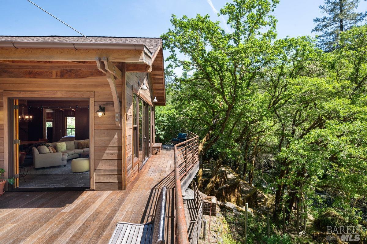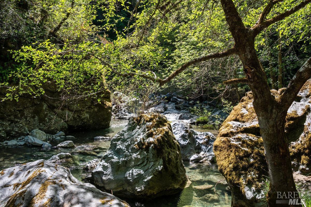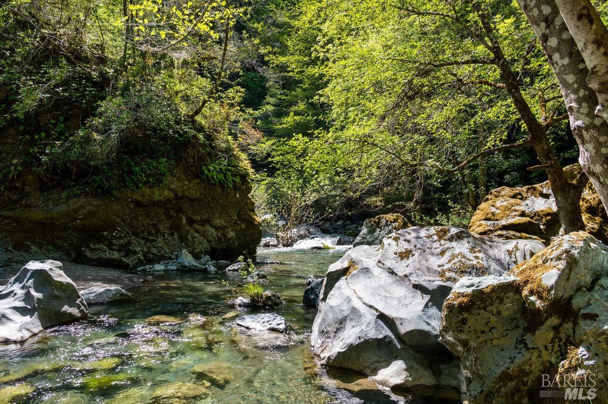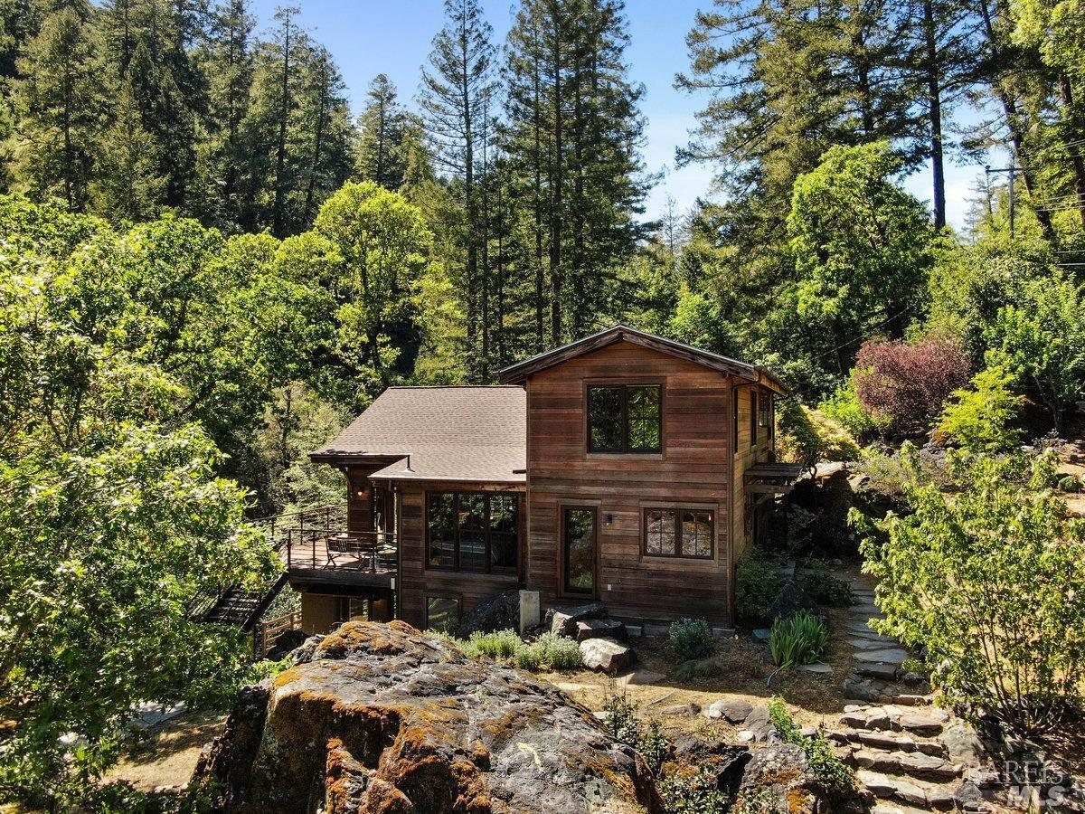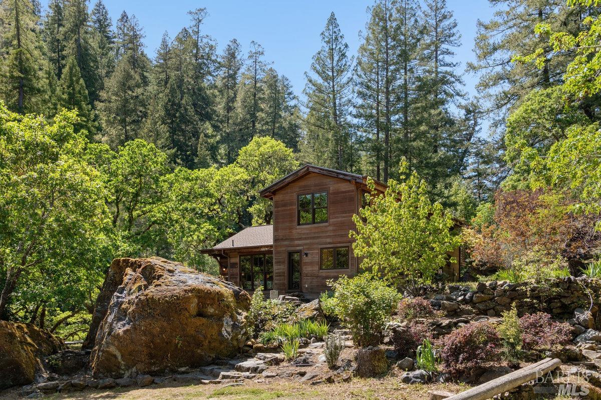 Once-in-a-lifetime retreat captures your imagination like no other. Worthy to be featured in Architectural Digest, Marks & Marks Design of Piedmont have outdone themselves to provide a spectacular home that enhances the setting rather than compete with it. Spacious & well-lit with clear-coated Cedar exterior, patinaed steel railings, floor to ceiling custom doors & windows, stunning slate floors, wonderfully modern kitchen with custom cabinets, granite countertop, and custom aluminum sheeting hood with hand-carved pattern. No expense has been spared. A timeless classic with front row seats to a private unbelievable, enchanting waterfall. Find the best spot to meditate or sunbathe to the sound of the water. Well worth the trip down the winding tree-lined road to your own piece of heaven. Don't wait, come experience the beauty and tranquility of the Austin Creek and Redwoods today.