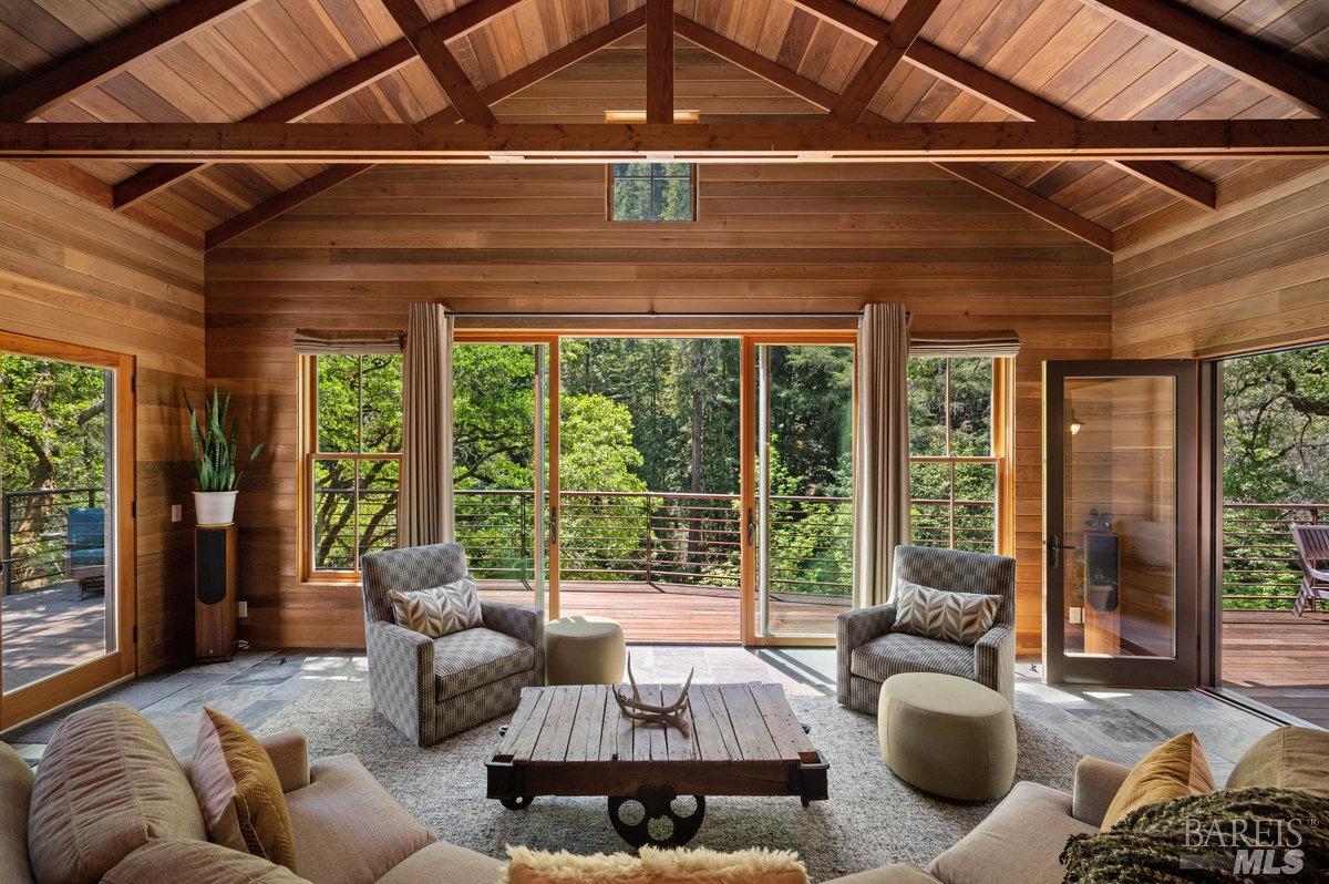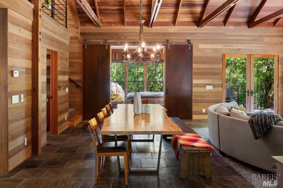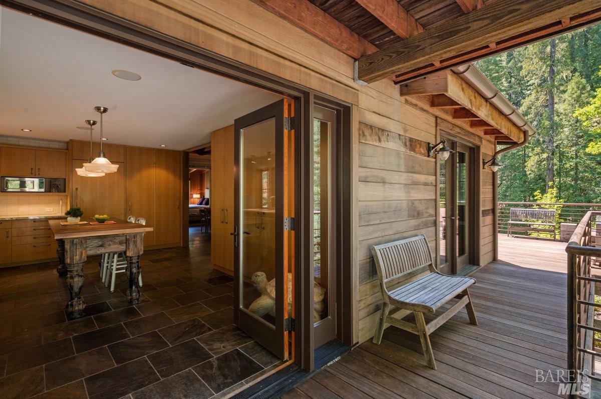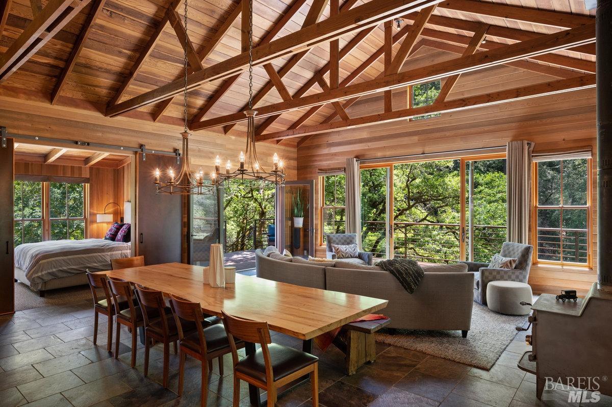 Once-in-a-lifetime retreat captures your imagination like no other. Worthy to be featured in Architectural Digest, Marks & Marks Design of Piedmont have outdone themselves to provide a spectacular home that enhances the setting rather than compete with it. Spacious & well-lit with clear-coated Cedar exterior, patinaed steel railings, floor to ceiling custom doors & windows, stunning slate floors, wonderfully modern kitchen with custom cabinets, granite countertop, and custom aluminum sheeting hood with hand-carved pattern. No expense has been spared. A timeless classic with front row seats to a private unbelievable, enchanting waterfall. Find the best spot to meditate or sunbathe to the sound of the water. Well worth the trip down the winding tree-lined road to your own piece of heaven. Don't wait, come experience the beauty and tranquility of the Austin Creek and Redwoods today.