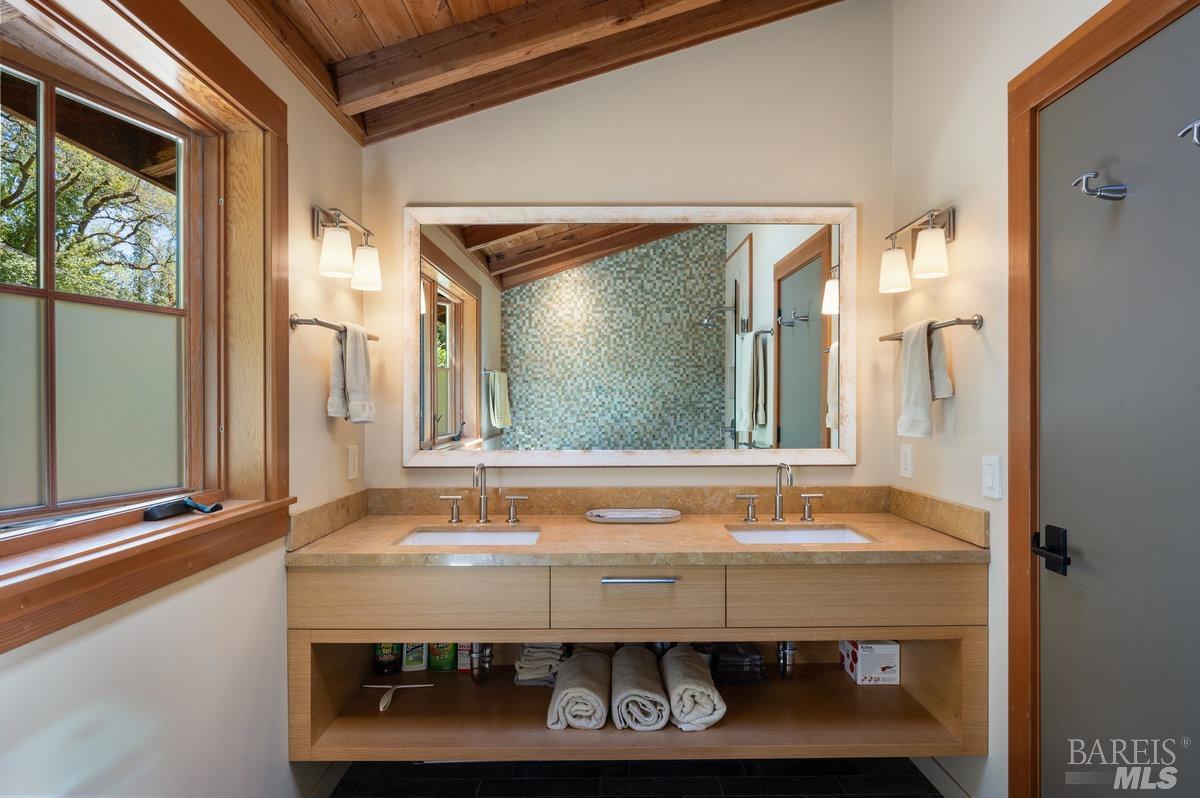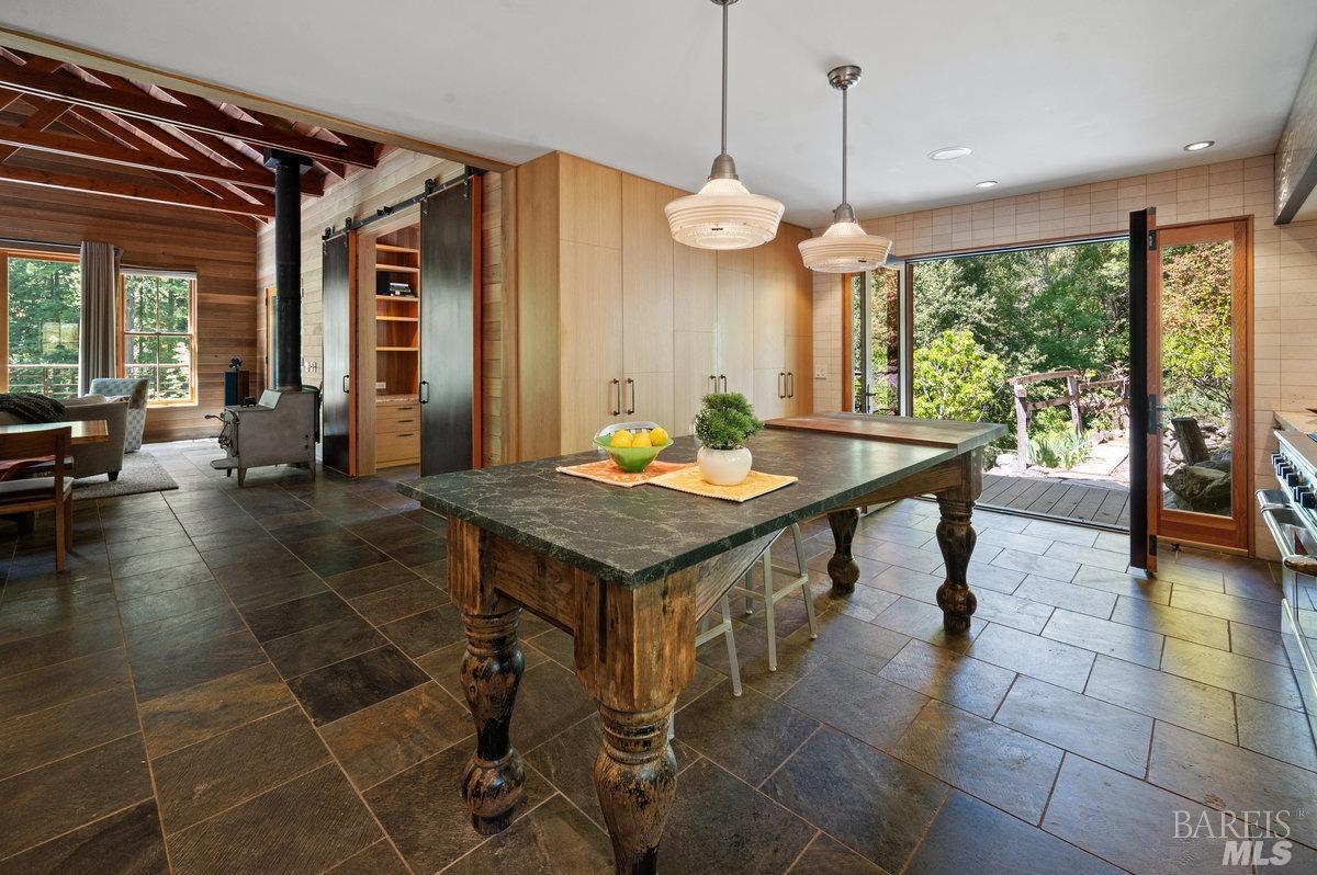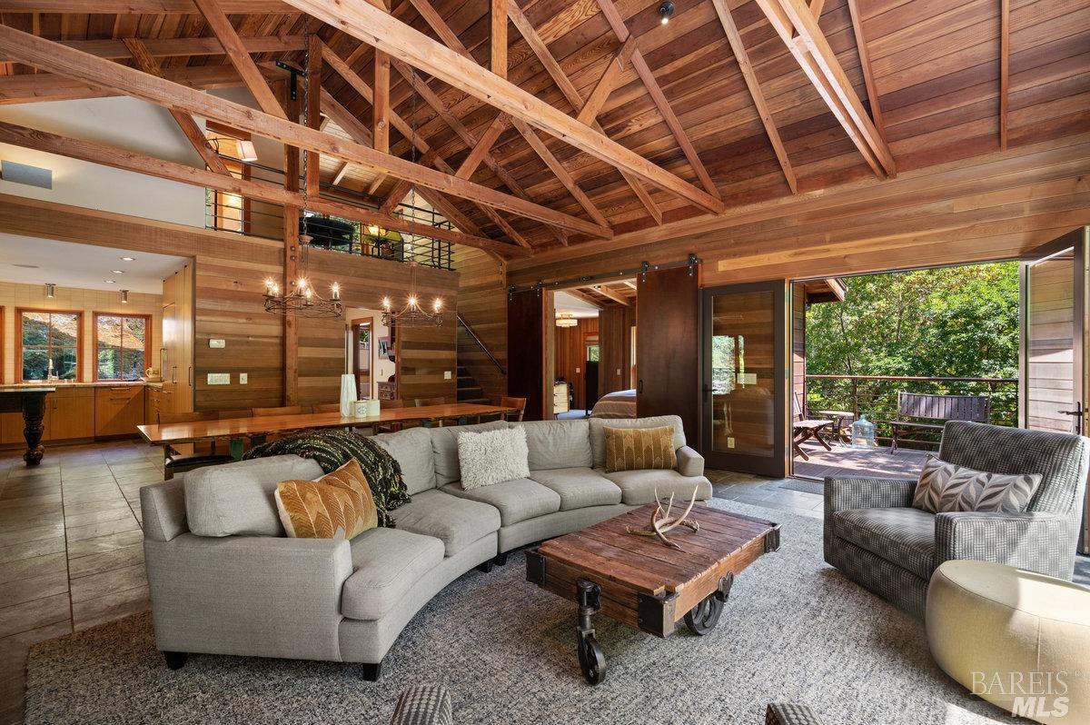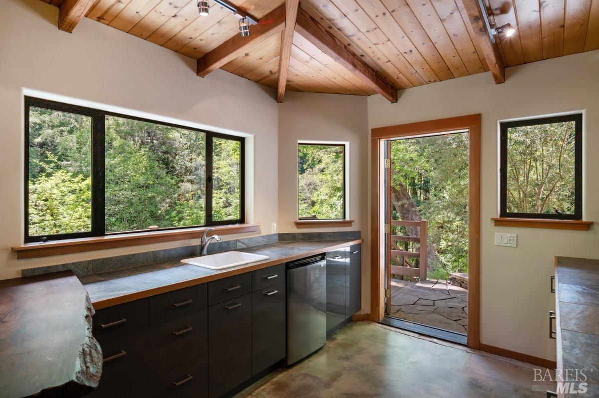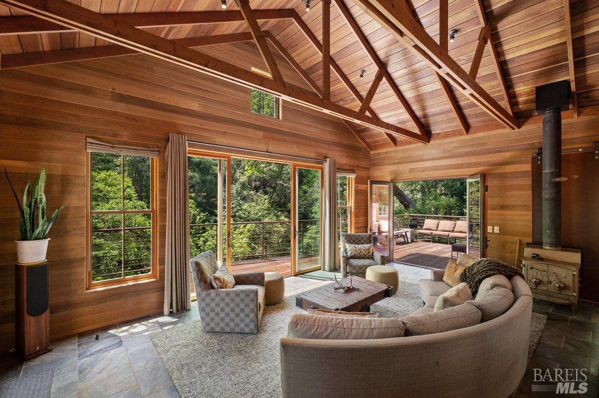 Once-in-a-lifetime retreat captures your imagination like no other. Worthy to be featured in Architectural Digest, Marks & Marks Design of Piedmont have outdone themselves to provide a spectacular home that enhances the setting rather than compete with it. Spacious & well-lit with clear-coated Cedar exterior, patinaed steel railings, floor to ceiling custom doors & windows, stunning slate floors, wonderfully modern kitchen with custom cabinets, granite countertop, and custom aluminum sheeting hood with hand-carved pattern. No expense has been spared. A timeless classic with front row seats to a private unbelievable, enchanting waterfall. Find the best spot to meditate or sunbathe to the sound of the water. Well worth the trip down the winding tree-lined road to your own piece of heaven. Don't wait, come experience the beauty and tranquility of the Austin Creek and Redwoods today.