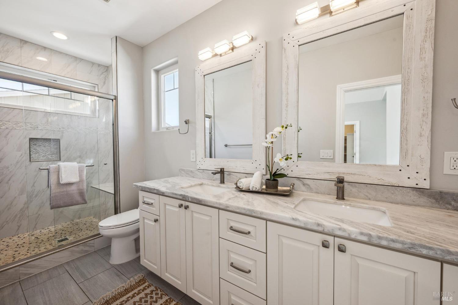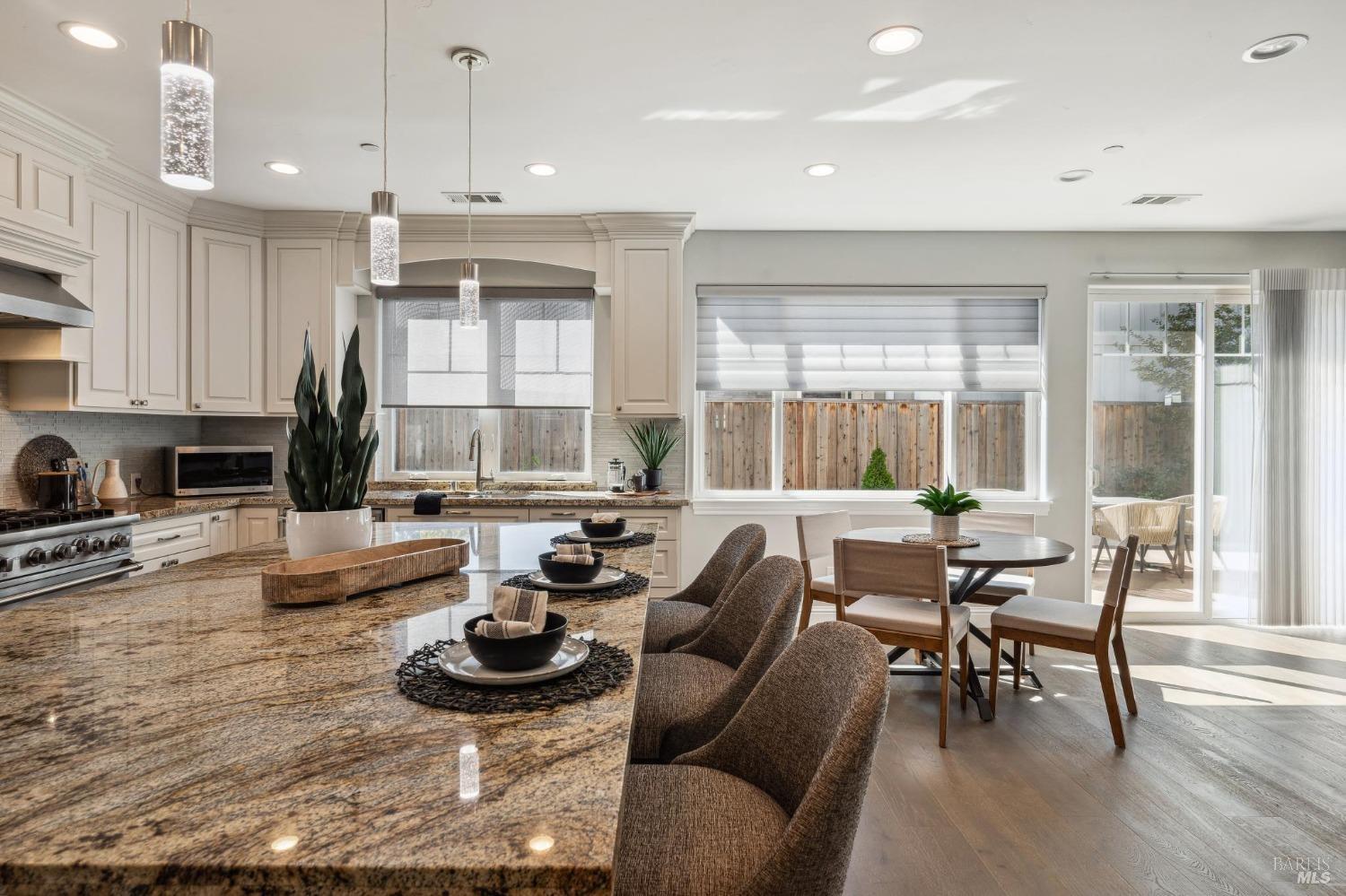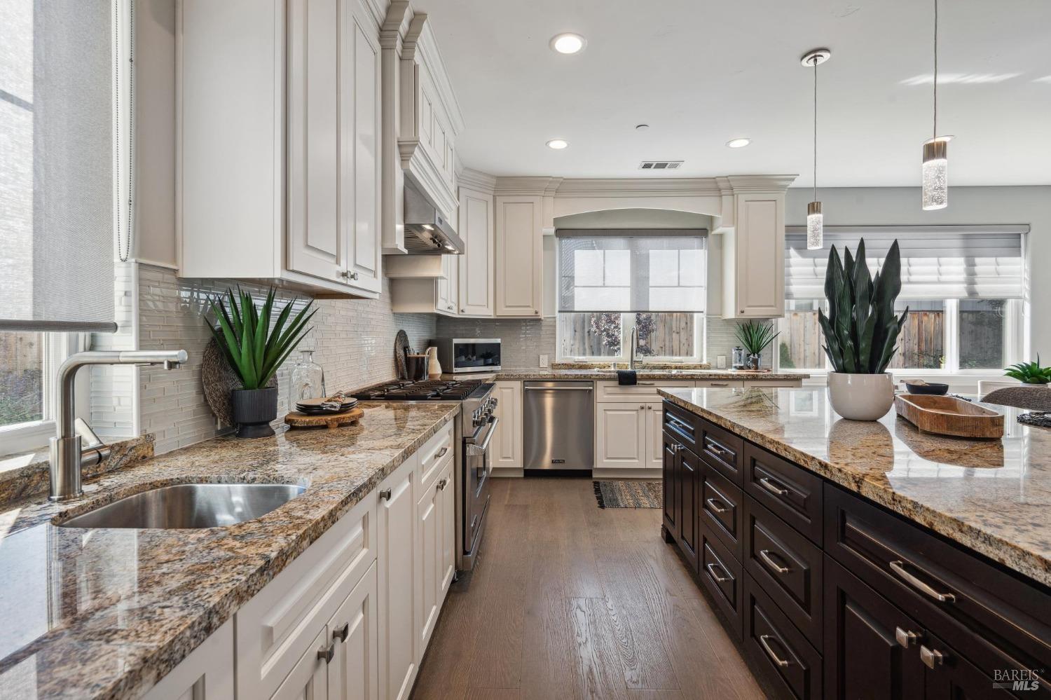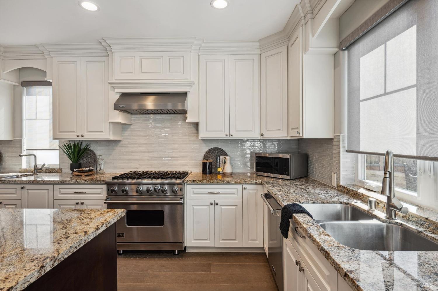 Your new happy place! This beautifully appointed, meticulously maintained home in the desirable Miramonte Neighborhood of Fountaingrove provides modern luxury & convenience. This 2740 sf, 4 bd, 3 1/2 ba home features high ceilings & rows of windows letting in an abundance of natural light. The Chef's kitchen sparkles with granite countertops, custom cabinetry, Viking appliances & impressive island. You'll appreciate the sophisticated finishes: engineered hardwood flooring, Milgard windows, Hunter Douglas blinds. 2-car garage has coveted epoxy finish floor, tankless water heater, & multiunit HVAC. Stately primary suite has walk-in closets plus extra storage room. Primary bath features dual sinks & beautifully tiled shower. Two bedrooms share a Jack-and-Jill bathroom while another bedroom offers its own private en-suite. Convenient upstairs laundry room. Step out to a thoughtfully designed patio & yard, a perfect setting for entertaining, gardening or play. There's even space to add an outdoor kitchen or cozy firepit. Excellent location with easy access to commuting routes, Fountaingrove Club, shopping, and hospitals. The nearby park with a pond is the perfect place for fun outdoor adventures.