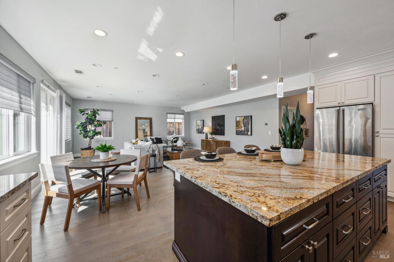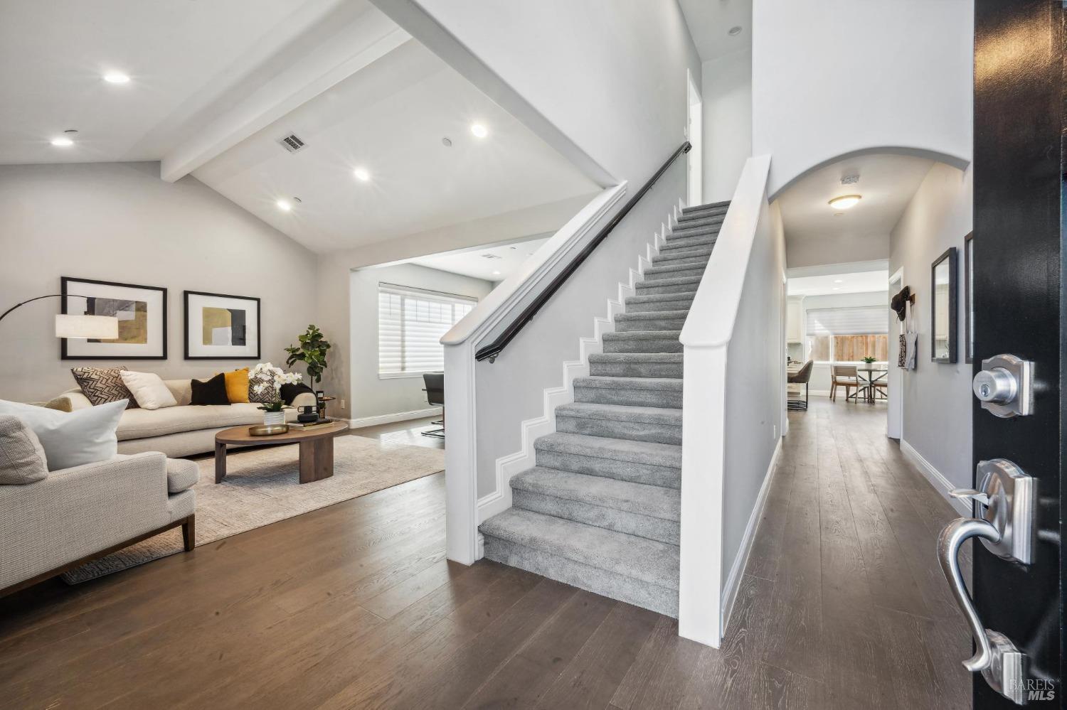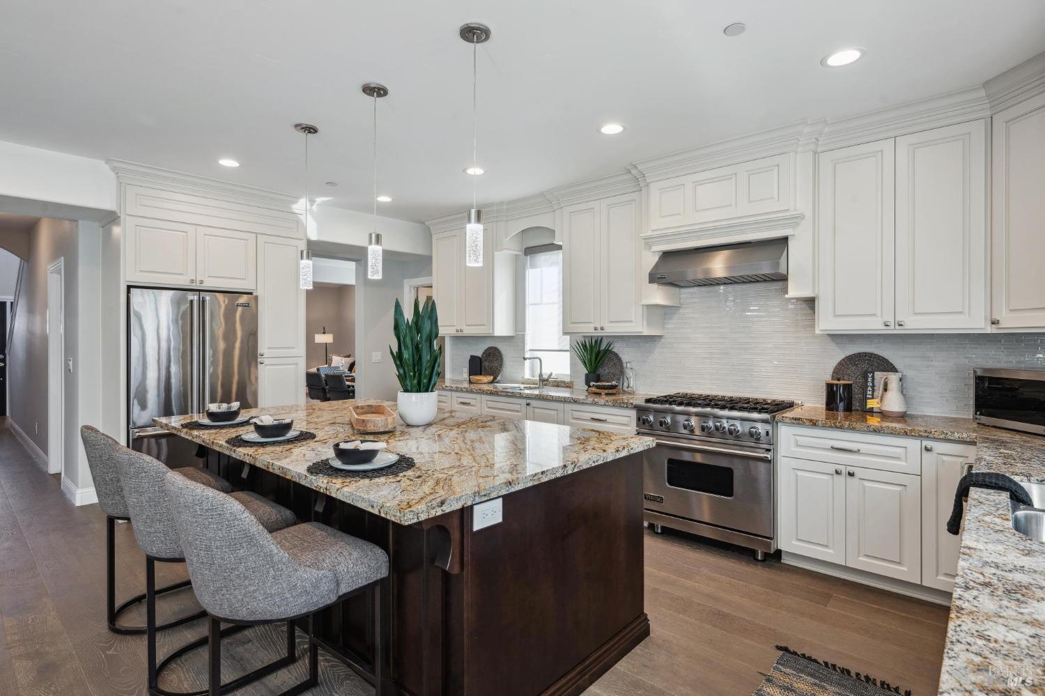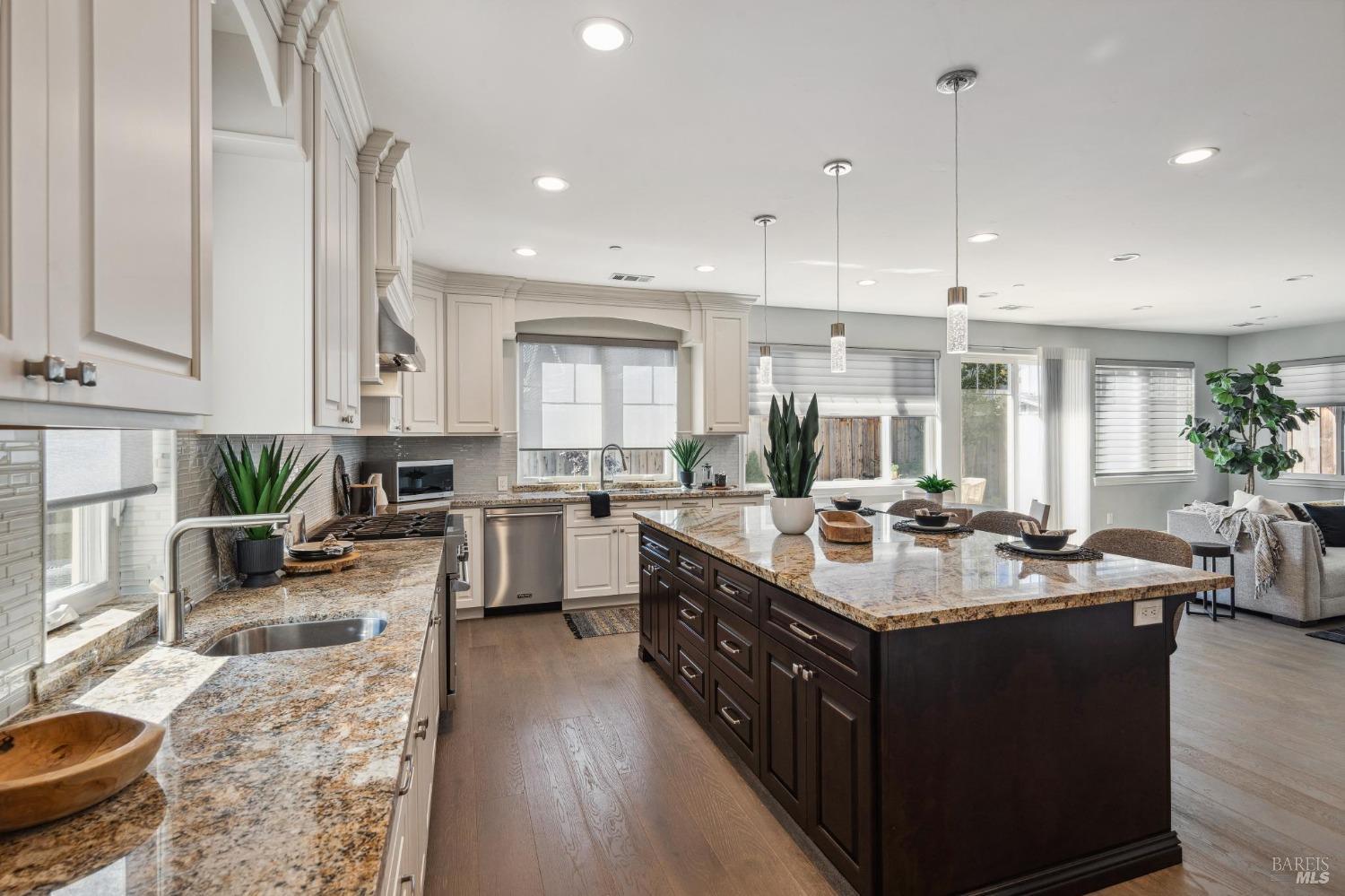 Your new happy place! This beautifully appointed, meticulously maintained home in the desirable Miramonte Neighborhood of Fountaingrove provides modern luxury & convenience. This 2740 sf, 4 bd, 3 1/2 ba home features high ceilings & rows of windows letting in an abundance of natural light. The Chef's kitchen sparkles with granite countertops, custom cabinetry, Viking appliances & impressive island. You'll appreciate the sophisticated finishes: engineered hardwood flooring, Milgard windows, Hunter Douglas blinds. 2-car garage has coveted epoxy finish floor, tankless water heater, & multiunit HVAC. Stately primary suite has walk-in closets plus extra storage room. Primary bath features dual sinks & beautifully tiled shower. Two bedrooms share a Jack-and-Jill bathroom while another bedroom offers its own private en-suite. Convenient upstairs laundry room. Step out to a thoughtfully designed patio & yard, a perfect setting for entertaining, gardening or play. There's even space to add an outdoor kitchen or cozy firepit. Excellent location with easy access to commuting routes, Fountaingrove Club, shopping, and hospitals. The nearby park with a pond is the perfect place for fun outdoor adventures.