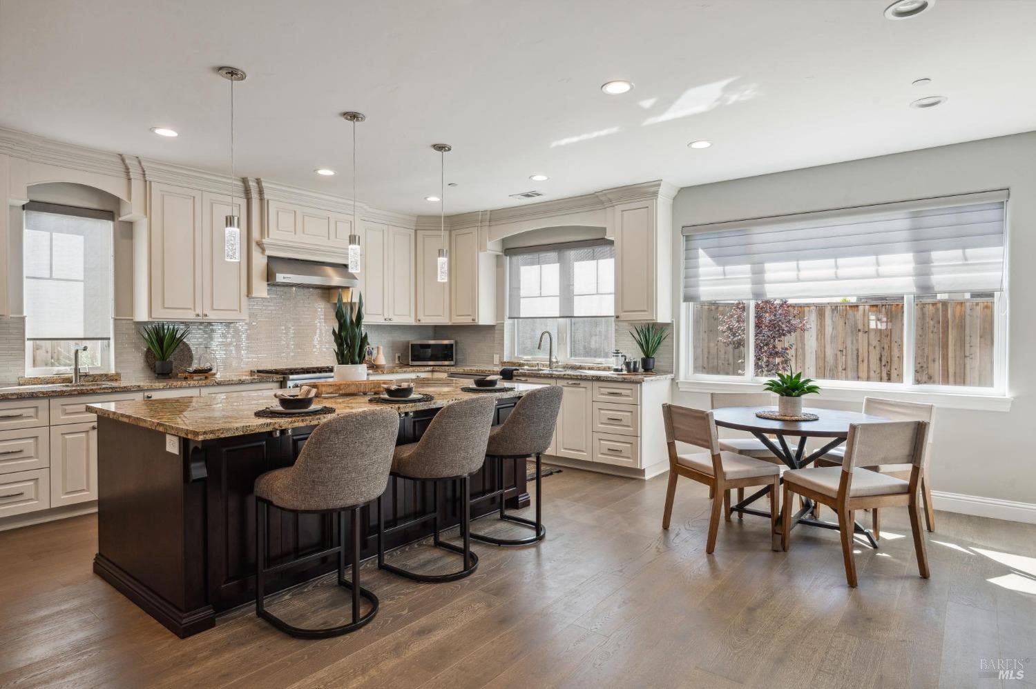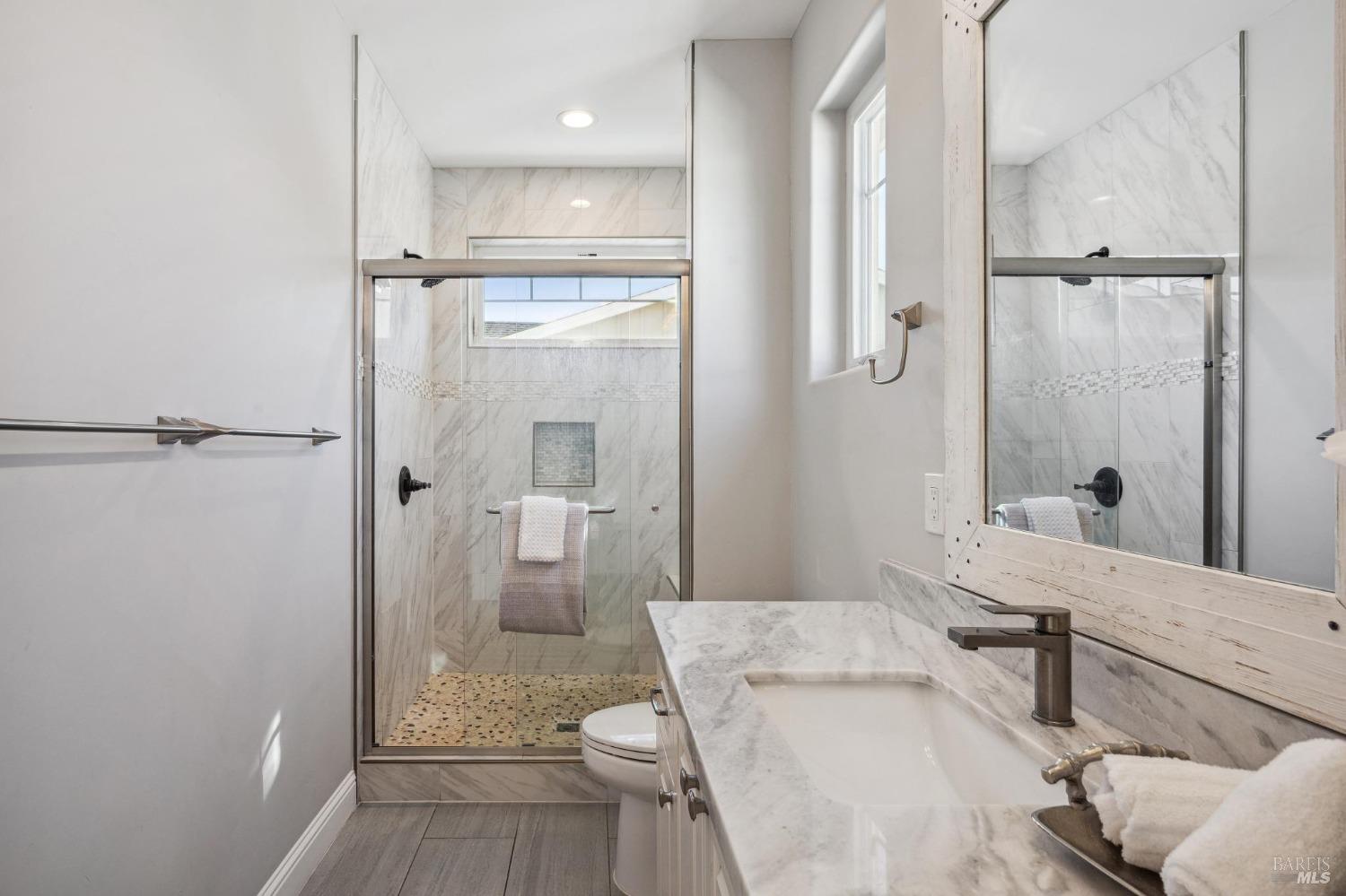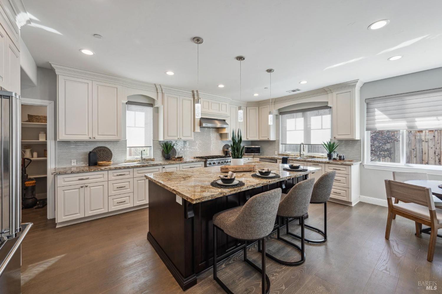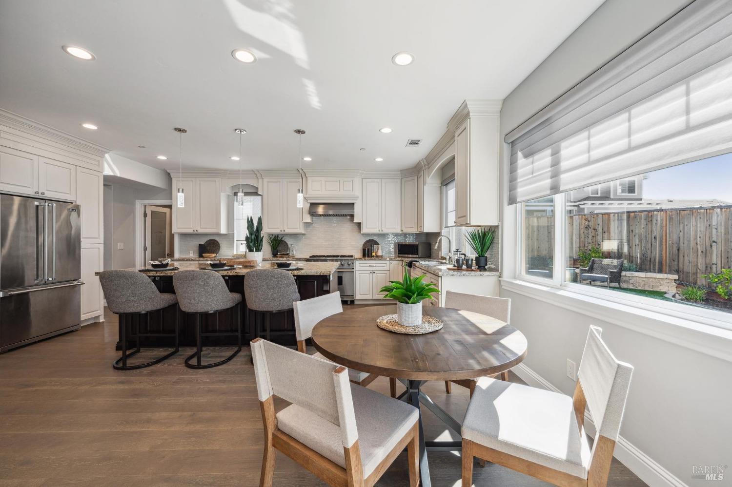 Your new happy place! This beautifully appointed, meticulously maintained home in the desirable Miramonte Neighborhood of Fountaingrove provides modern luxury & convenience. This 2740 sf, 4 bd, 3 1/2 ba home features high ceilings & rows of windows letting in an abundance of natural light. The Chef's kitchen sparkles with granite countertops, custom cabinetry, Viking appliances & impressive island. You'll appreciate the sophisticated finishes: engineered hardwood flooring, Milgard windows, Hunter Douglas blinds. 2-car garage has coveted epoxy finish floor, tankless water heater, & multiunit HVAC. Stately primary suite has walk-in closets plus extra storage room. Primary bath features dual sinks & beautifully tiled shower. Two bedrooms share a Jack-and-Jill bathroom while another bedroom offers its own private en-suite. Convenient upstairs laundry room. Step out to a thoughtfully designed patio & yard, a perfect setting for entertaining, gardening or play. There's even space to add an outdoor kitchen or cozy firepit. Excellent location with easy access to commuting routes, Fountaingrove Club, shopping, and hospitals. The nearby park with a pond is the perfect place for fun outdoor adventures.