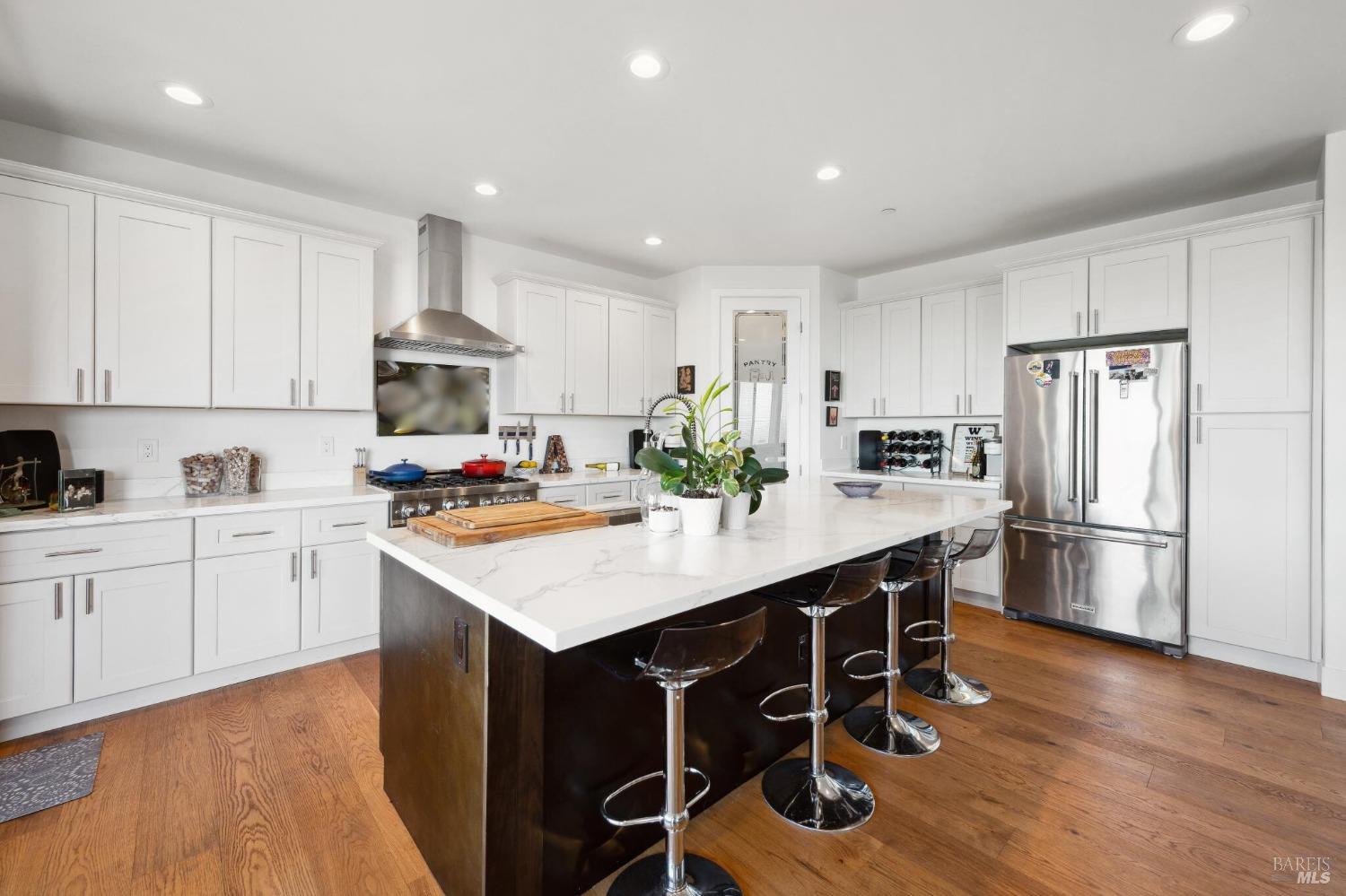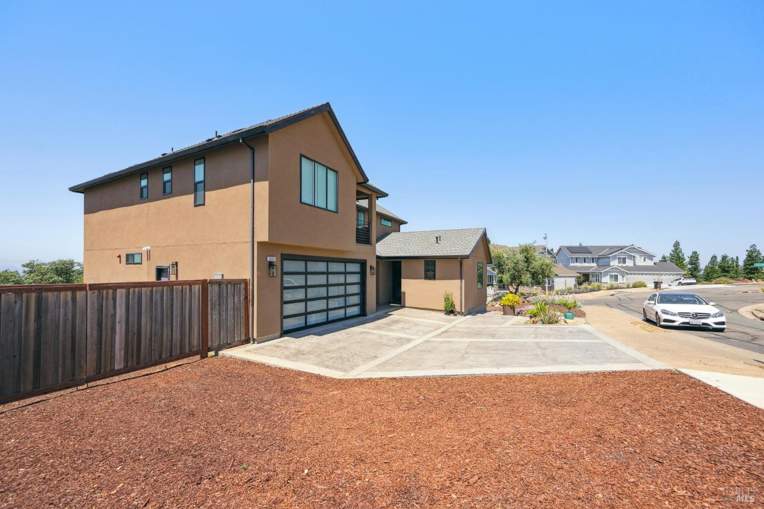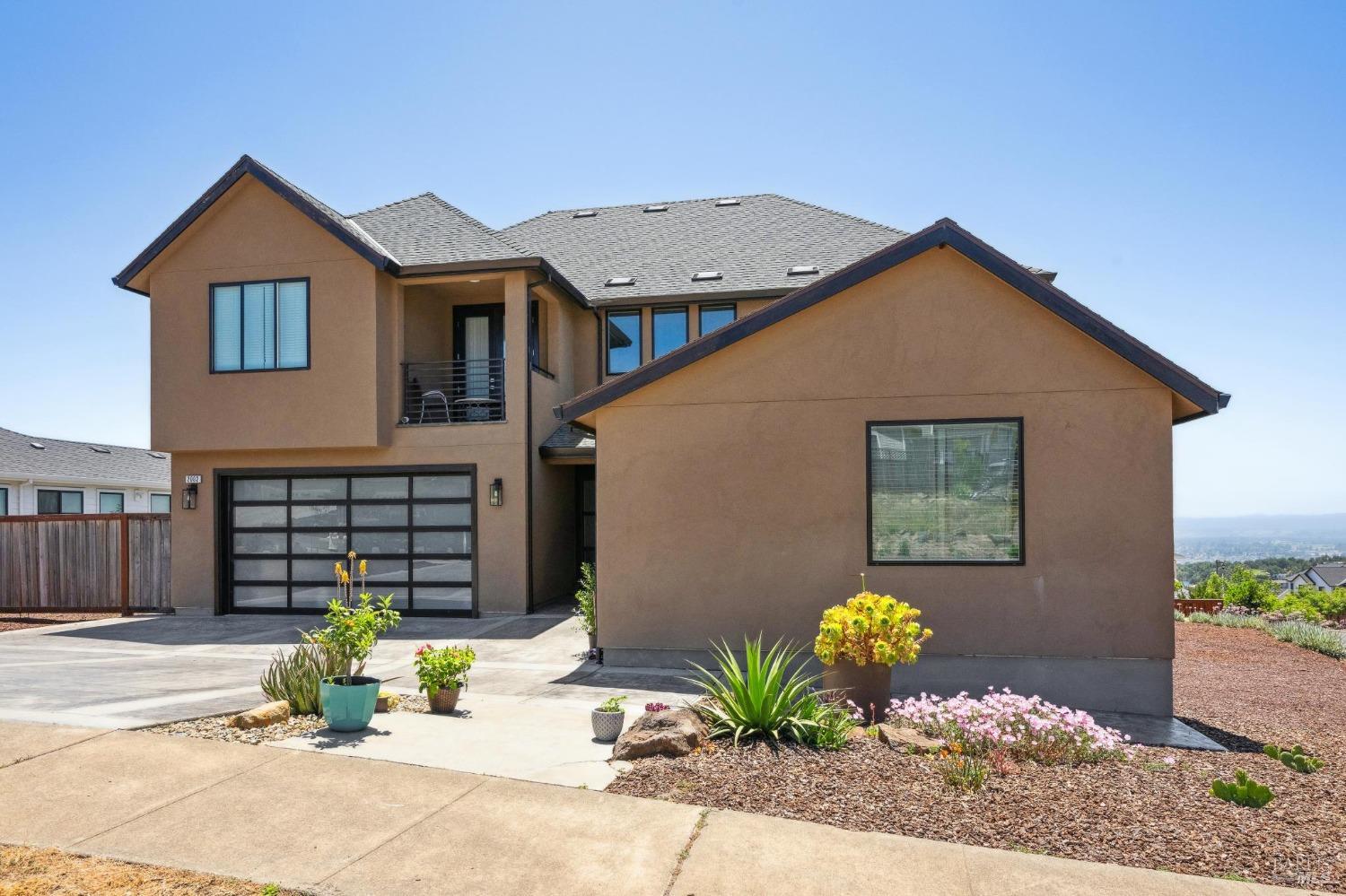Elegant & spacious Fountaingrove home with sweeping sunset views, large yard, & ADU. This 3242 sf, 6 bd, 4 ba contemporary home in a prime corner location features dramatic formal entry leading to inviting great room filled with natural light opening to the covered patio overlooking city lights to enjoy the outdoors year-round, perfect for entertaining. Gourmet kitchen - quartz countertops, 6-burner stove, large island with seating & a pantry. Solid wood cabinets, engineered wood floors, double ovens, solid 8' doors. Cozy up by the gas fireplace centerpiece. Plenty of wall space for your art. Upstairs retreat space to meditate, exercise or relax. Unobstructed views off the private deck from primary suite. Gorgeous spa-like bathroom with tiled shower, soaking tub, double vanity sinks & 2 walk-in closets. All bedrooms & closets are generous in size. Single level, 520+sf attached guest studio provides privacy & space for a rental, live-in help or for visiting friends & family with separate entrance, full bath & kitchen. Fence off & create the backyard of your dreams. Room for a pool, garden, play structure & more. With quick access to The Fountaingrove Club, hospitals, schools, and amenities - This is one of the best values in town!