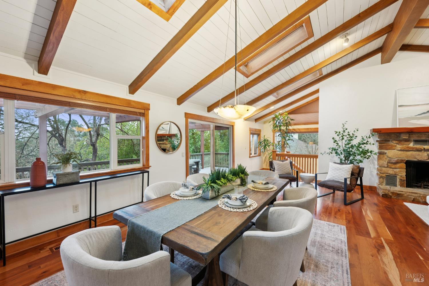 Reimagine a well-located home with space, privacy, and views, creating something truly special in one of Santa Rosa's most desirable settings. This Bennett Valley estate with its enduring style and resort-like yard is poised for its next chapter. This spacious, well-laid-out home offers a sense of privacy that feels worlds away yet sits just minutes from amenities, parks, and miles of hiking and biking trails. The truly exceptional backyard is thoughtfully designed for both grand entertaining and everyday enjoyment. The expansive deck unfolds from the breakfast room - an ideal setting for large gatherings or peaceful lounging surrounded by nature. Handsomely laid stone steps guide you to your own private retreat on the terrace, perfectly positioned to capture sweeping views of the hills while offering space for sun and relaxation poolside. The grounds are enriched by an abundance of mature fruit trees, a hobby vineyard and plantings, giving the landscape a lush, established feel. The result is a backyard that is nothing short of extraordinary, a haven that feels both expansive and intimate, beautifully curated yet natural, and one of the home's most remarkable features. Vaulted, beamed ceilings crown the living room, where a dramatic stone fireplace anchors the space and creates a timeless focal point. Adjacent dining area flows effortlessly to the kitchen, perfectly positioned for both intimate dinners and social get-togethers. The generously sized kitchen is a true hub for daily life featuring a large center island, cooktop, double ovens, and abundant storage - ideal for those who enjoy cooking, hosting, or simply gathering around the heart of the home. The main level offers comfortable and mostly single-level living with a primary suite, three additional bedrooms, two bathrooms, laundry room and access to garages. The lower level adds flexibility with a large family room complete with wet bar, full bathroom, plus a spacious room for a bedroom or office. A separate entrance makes this level ideal for guests, extended family, or potential second unit. Additional highlights include a wine cellar, 2-car garage with storage and ~800sf bonus room with half bath above it, offering endless possibilities for a studio or creative space. Timeless Design. Enduring Style. Exceptional Setting.