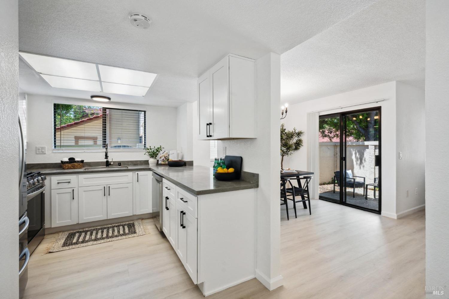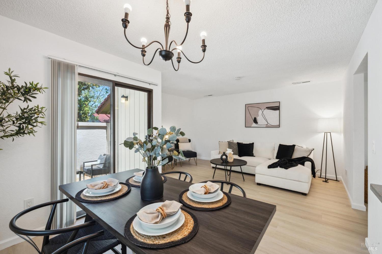 Updated and Adorable. Roomy 1500+, 3 bedroom, 2.5 bath condo has recently been remodeled. Family room opens to private patio for sun and shade. Perfect for lounging or firing up the BBQ. Remodeled kitchen is well laid out with a pass-through window to dining/family room so you can cook and chat while entertaining. Features sleek countertops, built-in microwave, & stainless steel appliances. Head upstairs to the primary suite, bedrooms & full bath. Laundry conveniently located on upper level. Take a leisurely stroll around the well-manicured grounds with two pools, clubhouses, & playground. Dedicated 1-car garage & parking space. HOA also covers exterior, roof, & garbage. Great location! Petaluma Valley Hospital & Lucchesi Park are a few minutes away. Park amenities include a pond, picnic tables, group use BBQ area, sports courts (tennis, pickle ball & handball), multi-use synthetic turf field, baseball complex, playgrounds, & walking paths. Petaluma Community Center and Petaluma Senior Center are nearby. Just a 1/2 mile to Deer Creek Village - home to Friedman's, City Sports Gym, Smart & Final, Mary's Pizza Shack, Cafe Mimosa, The Habit Burger, Sour Dough and Co, Dunkin, Jamba Juice and MORE! When are ya moving in?