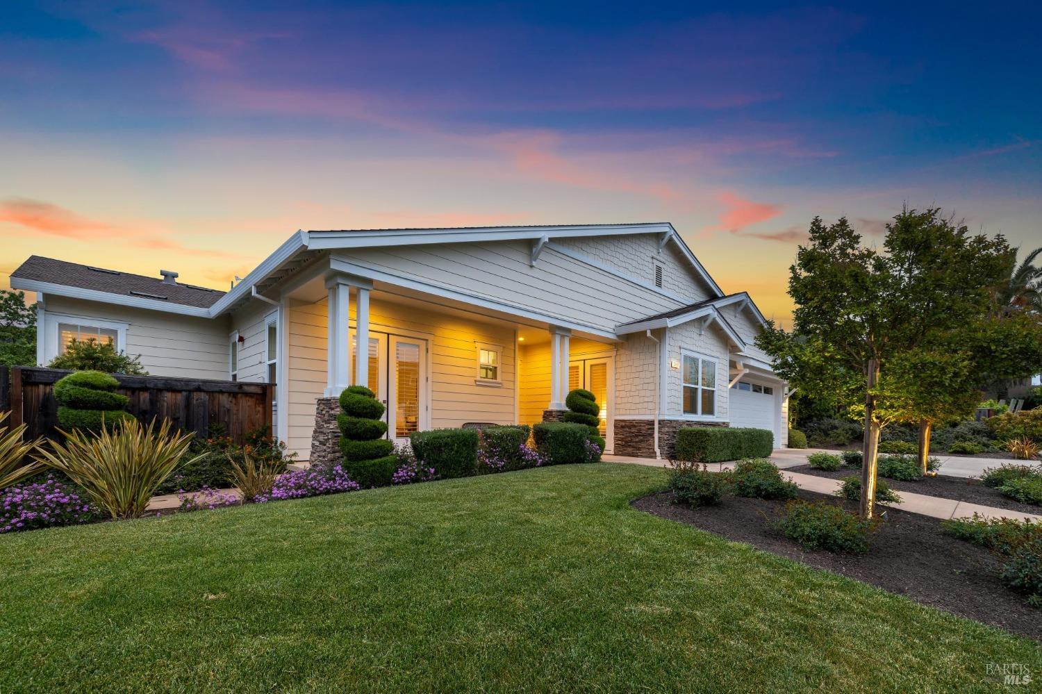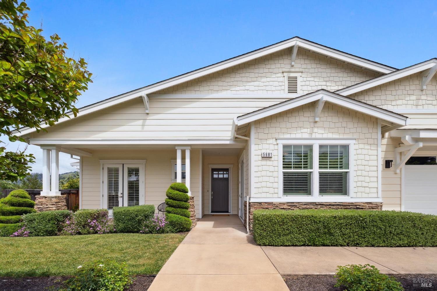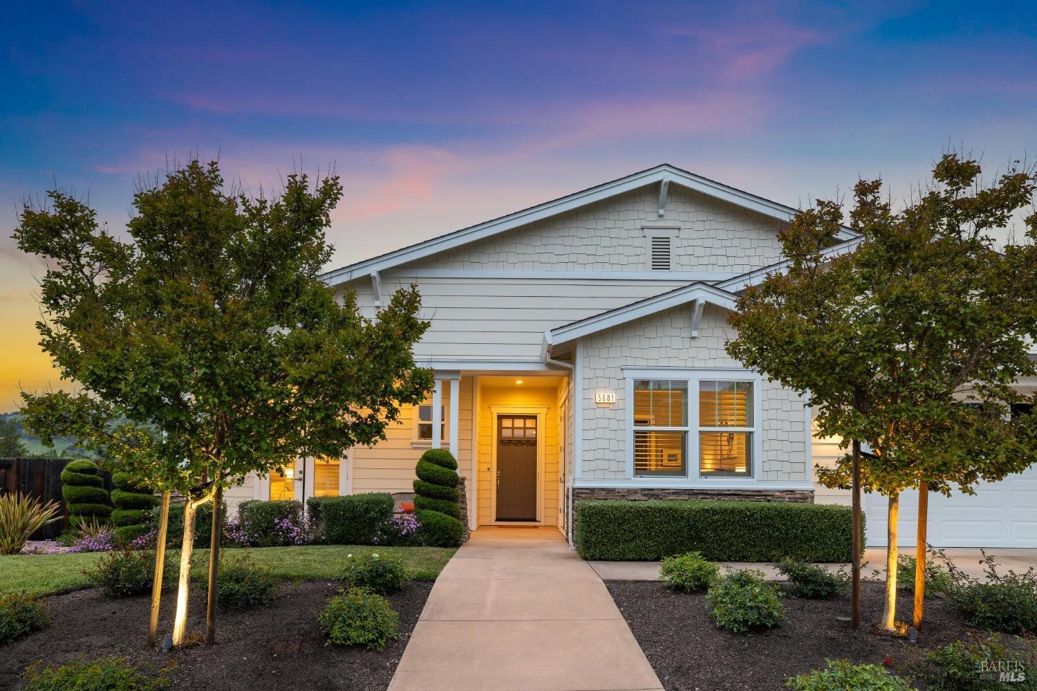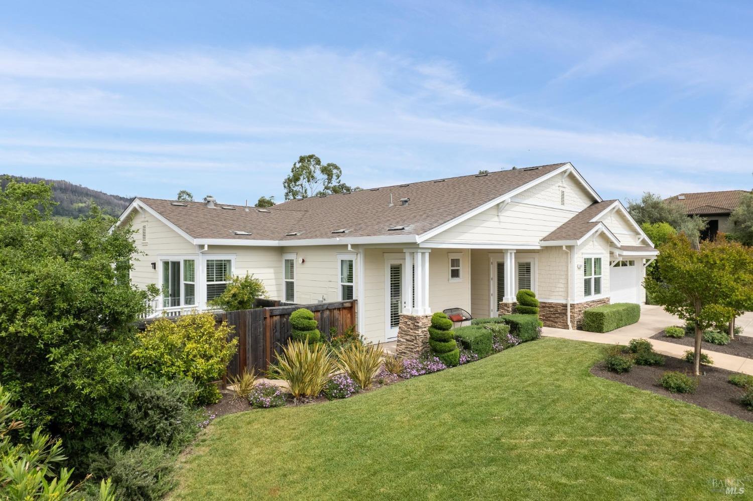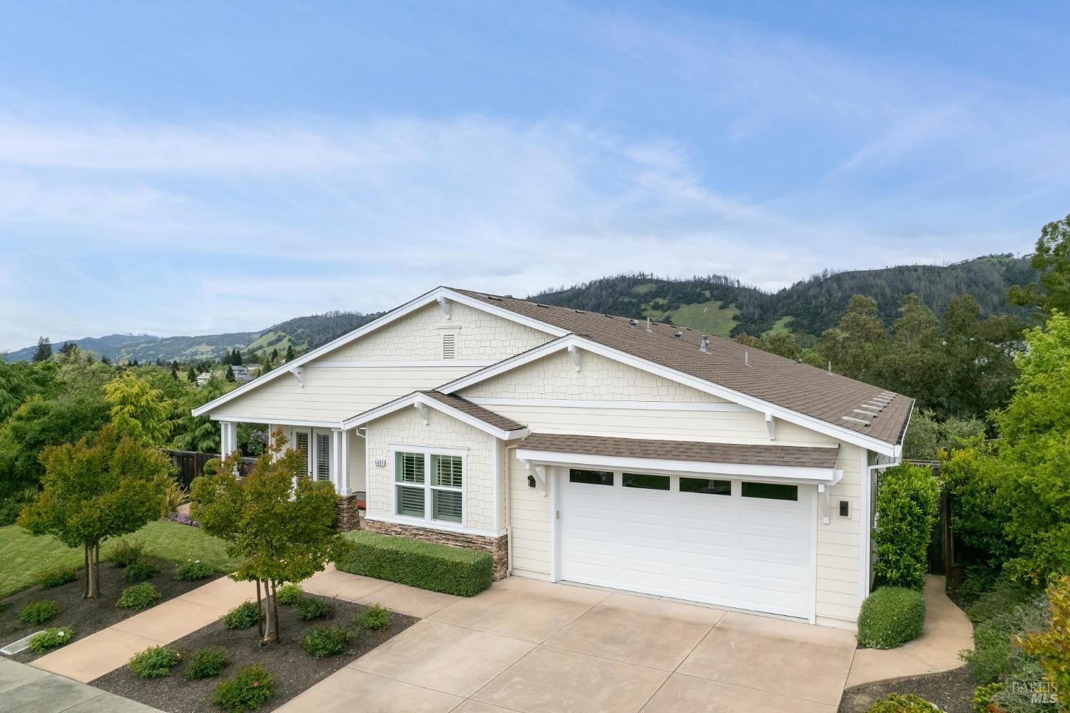 Beautifully designed and impeccably maintained ~2897 sf, 5 bd/ 4 ba single level home exudes sophistication with premium finishes. Elegant single-level located in a secluded Sky Hawk community private cul-de-sac with sweeping views of the hills. Elegant great room lets the light in with a row of picture windows to savor the scenic backdrop of the hills, your mini olive tree orchard and hidden garden sanctuary, ideal for relaxation. Treat your culinary senses in the open-plan kitchen featuring a spacious island complete with sleek Caesarstone countertops, ample storage, breakfast area and stainless-steel appliances. Gorgeous dining area provides an ideal space for cozy dinners or lively gatherings, seamlessly flowing onto the deck & patio for indoor-outdoor entertainment. Find your sanctuary in the yard with lush greenery & landscaping surrounding you for privacy. Unwind in your primary suite with walk-in closets, spa-like bathroom, soaking tub & shower, & private deck. With four other good-sized bedrooms & three full bathrooms, this floor plan affords many different scenarios, from work-at-home, to room for friends and extended family. Close to Austin Creek & Sequoia highly rated Schools, Trione-Annadel State Park and many wine country attractions