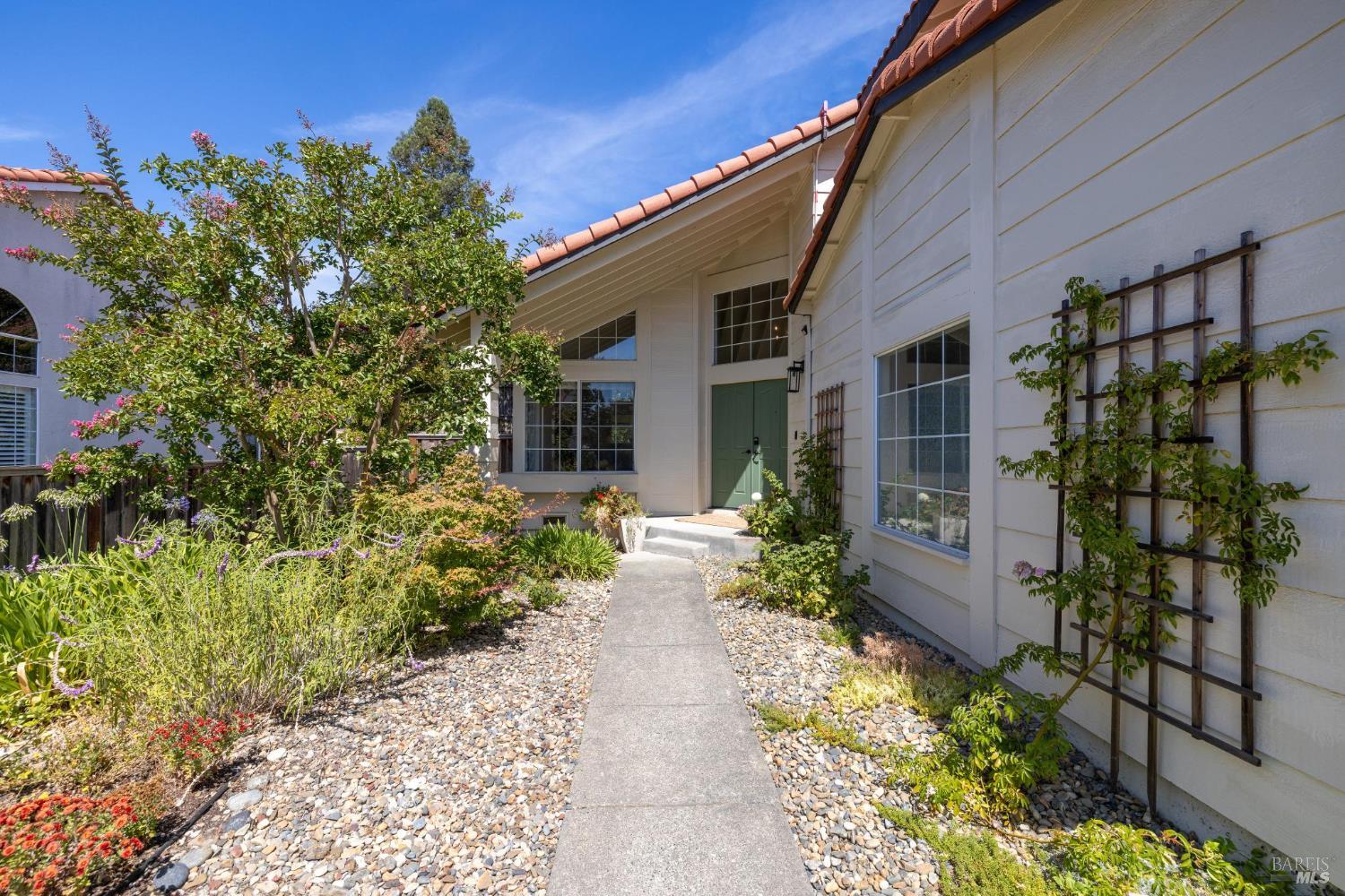 Turnkey home for your executive lifestyle. Spacious & Stylish with 4 bedrooms, 3 bathrooms, and approximately 2,200 sq. ft. of beautifully maintained living space designed for comfort and functionality. Paid-for solar. New stove. Guest bedroom and full bath on the main level. Enjoy a low-maintenance landscaped yard with a few fruit trees - fig, Fuyu persimmon and a plum start - perfect for those who want elegance without the upkeep. Just around the corner from scenic hiking trails, ideal for morning walks or an after-work unwind. Access to community pool, playground, and tennis courts - all just minutes from home. Soaring ceilings, abundant natural light, and warm hardwood floors create a sophisticated yet welcoming atmosphere. With both formal and casual living spaces, this home offers the versatility to entertain or retreat in comfort. Nestled in one of Windsor's most desirable neighborhoods, with easy access to shopping, dining, and Sonoma County's wine country lifestyle.